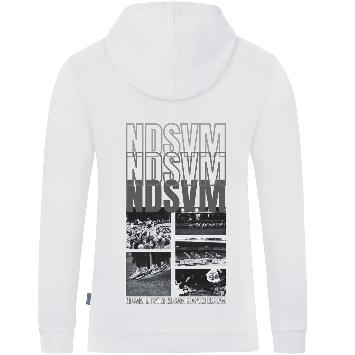 Dieser weiße Basic Hoodie im Unisex-Schnitt überzeugt mit mittigem Logo auf der Brust und dem markanten Rückenschriftzug „Seele der Stadt – Stolz der Region“.