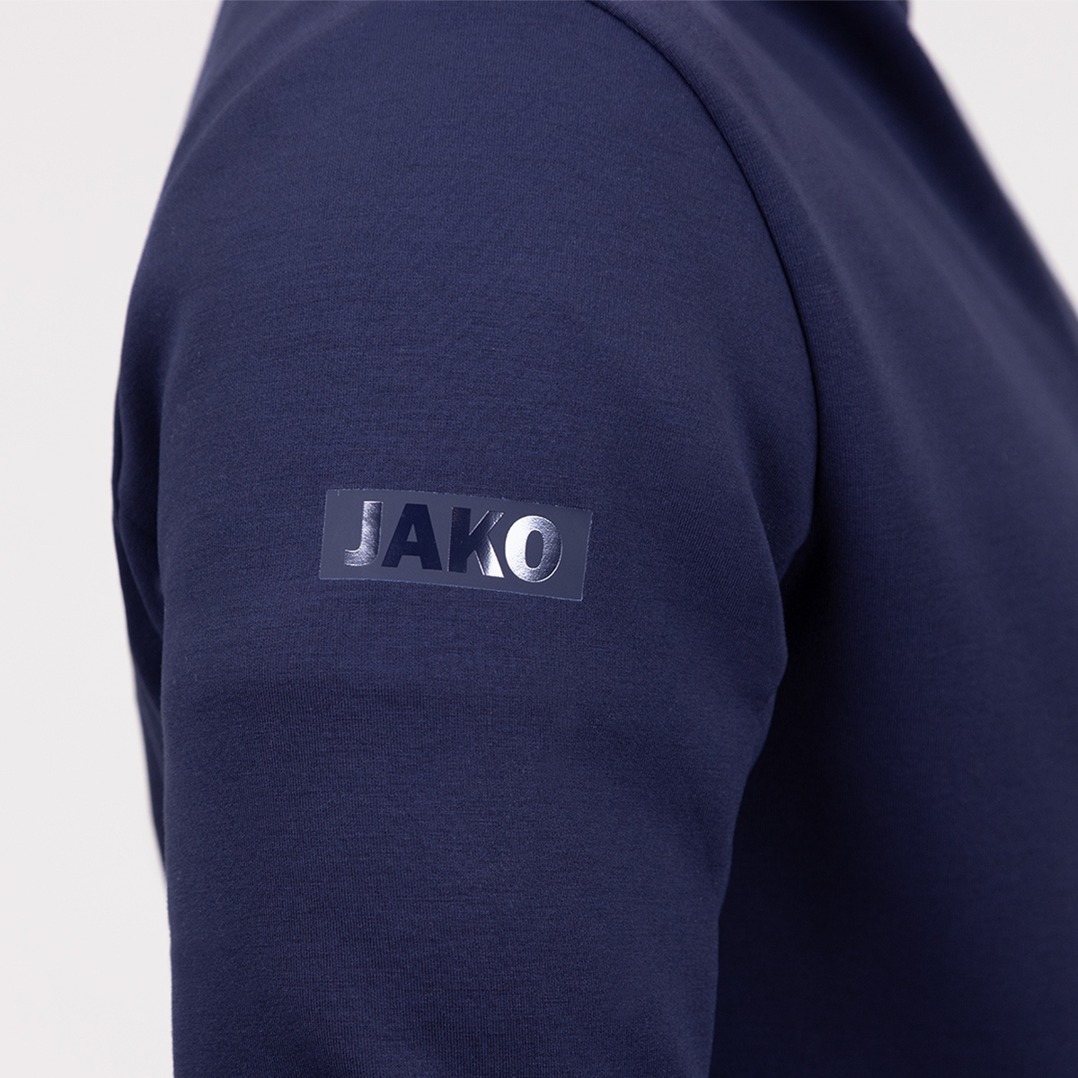 Gefertigt aus weichem, elastischem Stoff überzeugt die Jacke mit hohem Tragekomfort und sportivem Schnitt. Praktische Seitentaschen sowie eine zusätzliche Tasche mit verdecktem Reißverschluss bieten Platz für kleine Essentials. Der Reißverschluss mit JAKO-Branding setzt dezente Akzente.